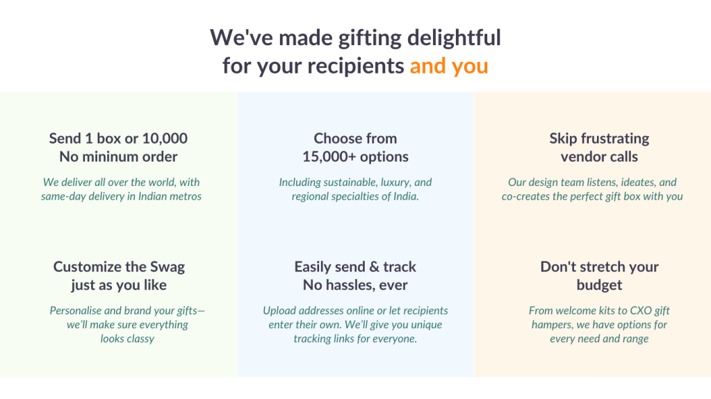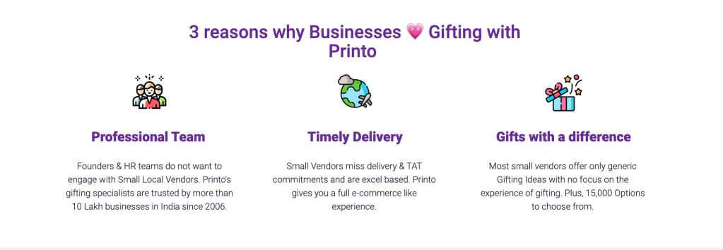 As you can see, there was very little storytelling and nothing that differentiated Printo from others in this high-competition, operationally-heavy space. In reality, Printo’s offering was very different and designed to simplify the way gifting is done. Operationally easy for the admin/ops/HR folks on the procurement side, lots of options for them to choose from, and reliable too.