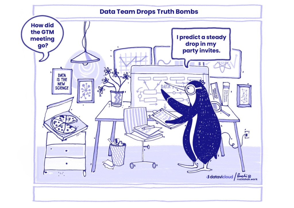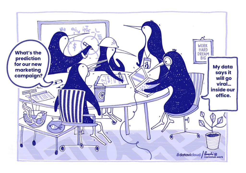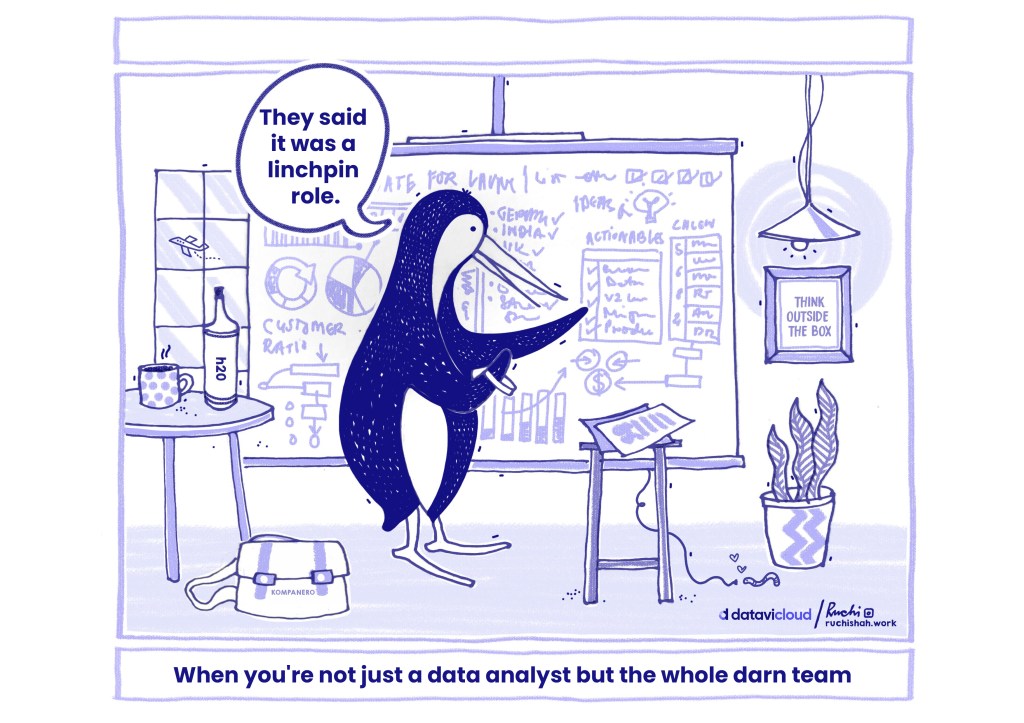 Much of analytics and BizOps in any fast-growing business is absolute chaos. The only way to get through each day is to look at the humorous side of things. How do we reflect that in the brand messaging? Vikas (CEO, Co-founder) had the idea of creating a comic series featuring Penguins (they’re adorable and already dressed in suits!) as characters in just such a work setup. I have a ball coming up with funny ideas and writing the dialogues each week. And Ruchi Shah, a talented illustrator, visualises them with amazing attention to detail.